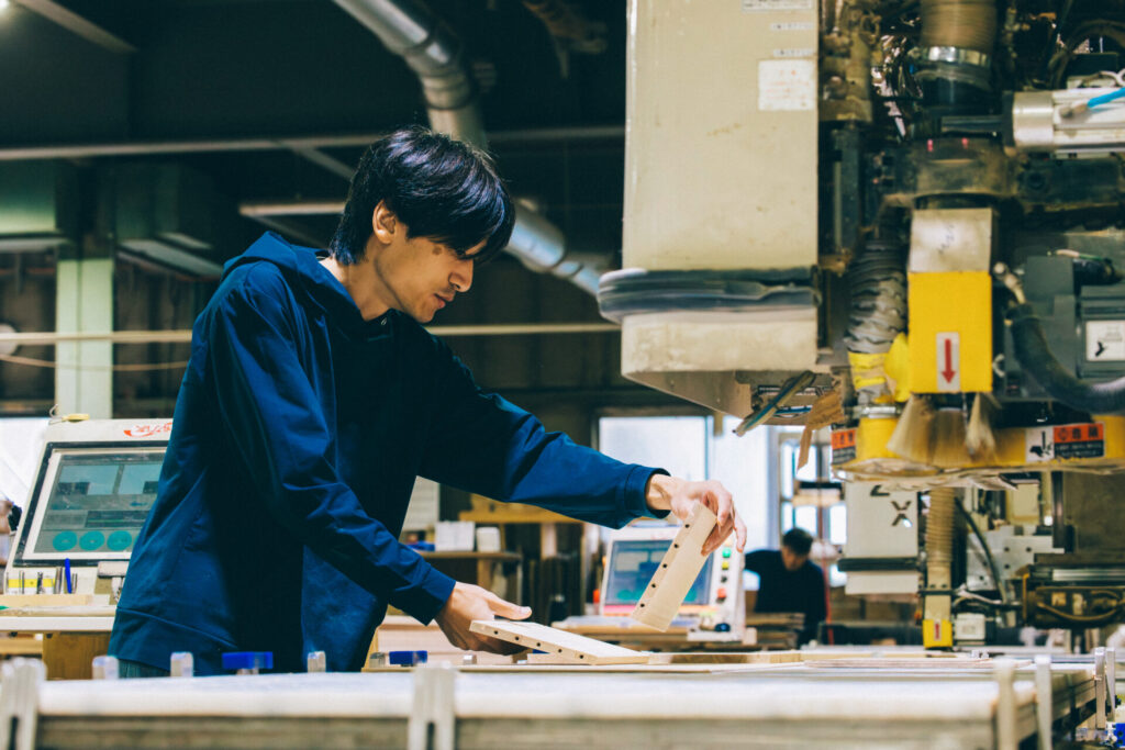 それまでの家具製造は、職人が一台ずつ機械に張り付き、手作業で調整しながら加工する方式だった。職人の技と経験に支えられた現場には、人の手の温もりがある。だが一方で、手作業の比重が大きすぎると、時間もかかるし、出来上がりの質にばらつきも出る。工程を整理すればもっと品質も効率も上がると考えた。